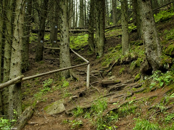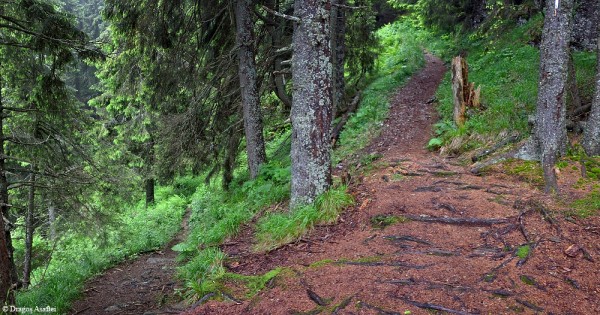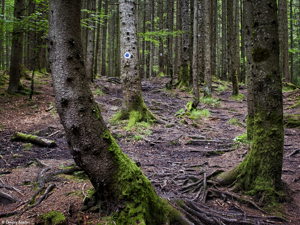 Am plecat deci către Izvorul Muntelui unde am lăsat mașina pentru mersul pe jos. Am ales să urcăm, după câteva sfaturi primite, pe traseul Izvorul Muntelui – Cumătura Lutu Roșu – Cabana Dochia, un traseu recomandat pentru începători, dar un traseu nerecomandat pentru cei ce vin să facă fotografii. Din păcate n-am știut acest lucru și a trebuit să-l aflăm pe propria răspundere. E un traseu de 3 ore și 30 de minute, un traseu doar prin pădure, un traseu cu urcușuri abrupte, însă deloc periculos.