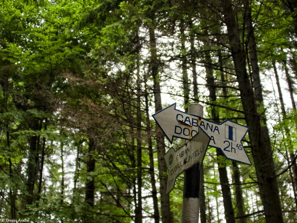 După circa 45 de minute de urcat am ajuns la indicatorul către Cabana Dochia, indicator care ne arăta distanța aproximativă pe care trebuie să o parcurgem. Tot aici lângă acest indicator se află și niște bănci cu mese pe care poți sta și te poți odihni. De aici începi să simți cum urci și să obosești din ce în ce mai repede după fiecare pauză scurtă.