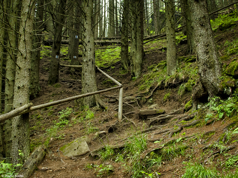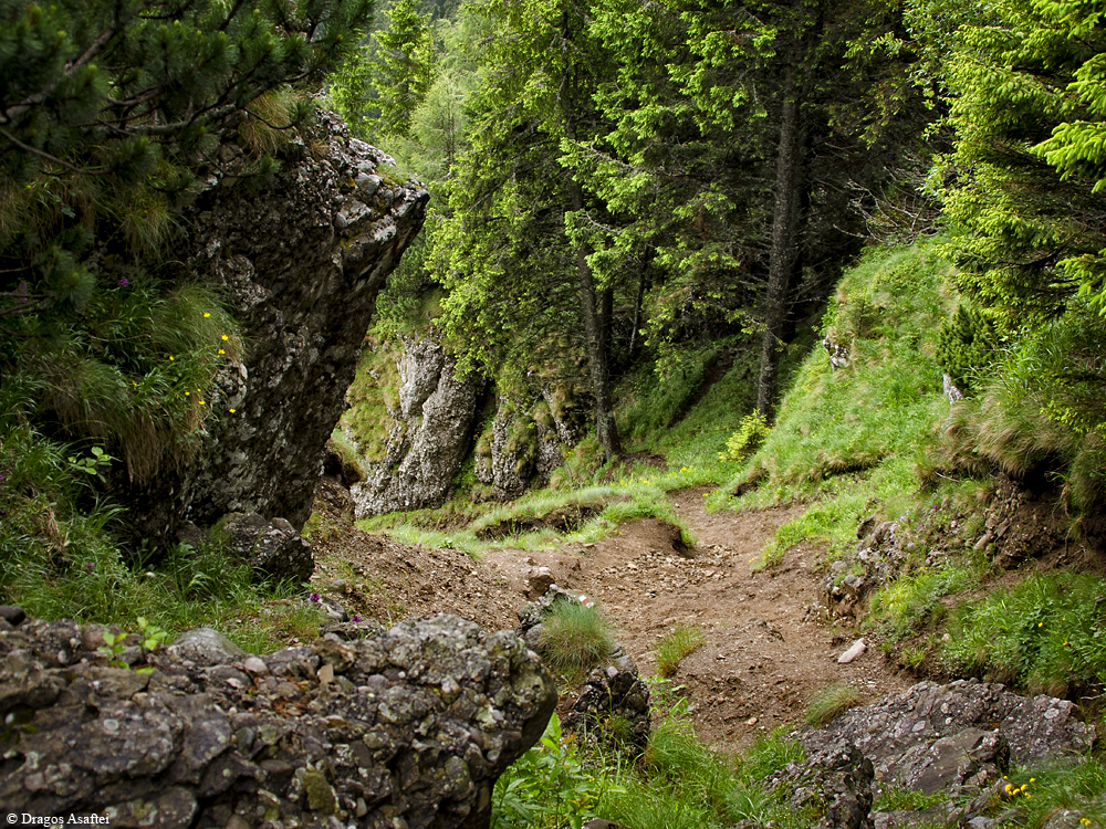 A doua zi de dimineață am început să coborâm. Am ales un alt traseu care e mult mai spectaculos pentru fotografii, dar și puțin mai greu. Nu credeam că voi zice asta, dar coborârea a fost mult mai grea decât urcarea. Traseul ales a fost Cabana Dochia – Poiana Maicilor – Izvorul Muntelui, un traseu care la coborâre are circa 4 ore. Cam atât am făcut și noi. Am intrat pentru început într-o pădure în care am coborât în continuu circa jumătate de oră.