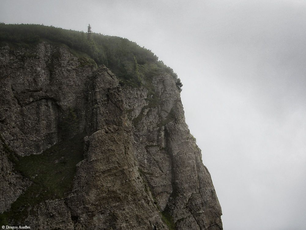 Ce-am făcut, ce nu am făcut, urmând traseul am început să urcăm iar la 1700 metri, adică la o înălțime cu 6 metri mai mică decât cea de la Cabana Dochia. Aici am dat de o ceață densă și un vânt puternic și rece.