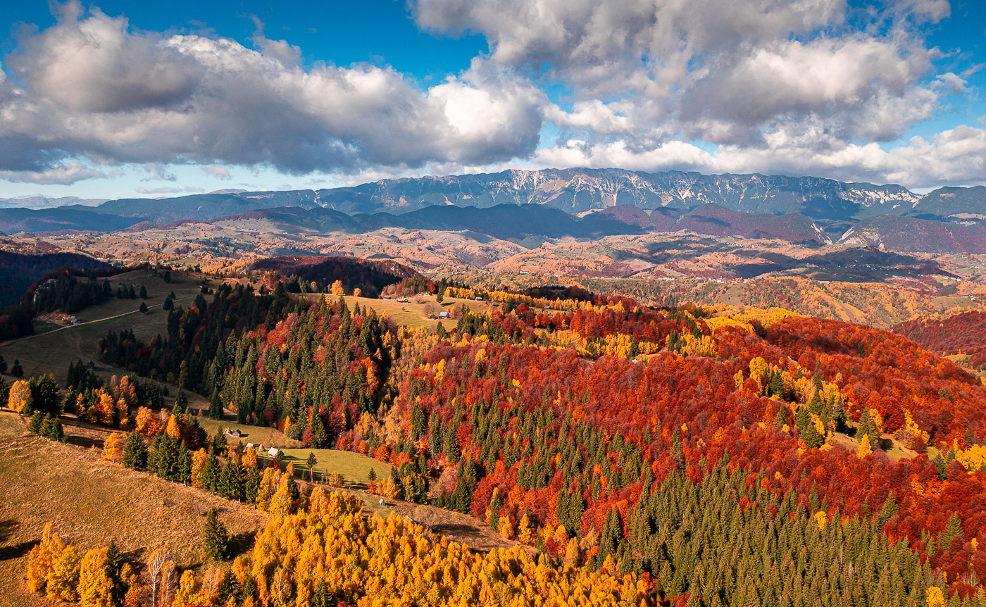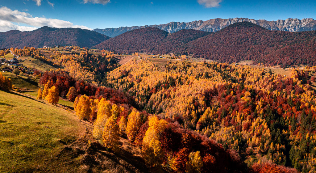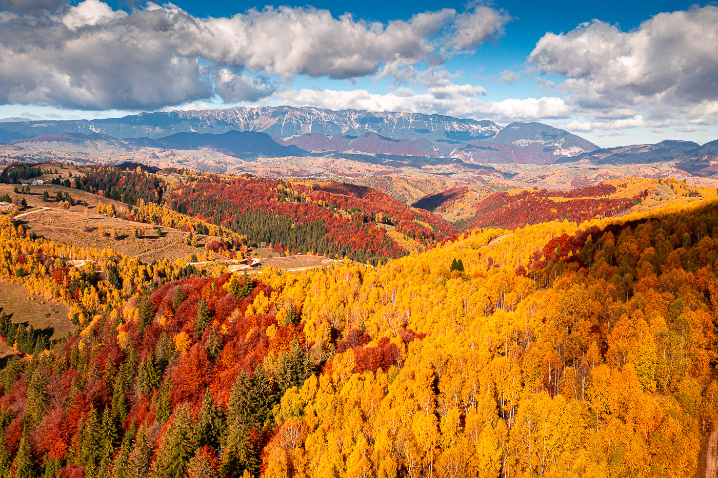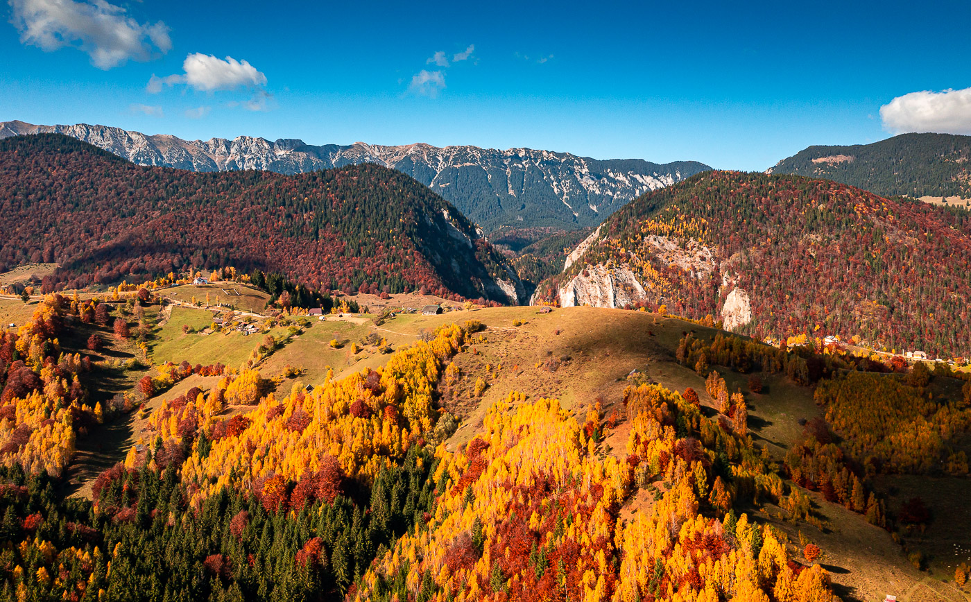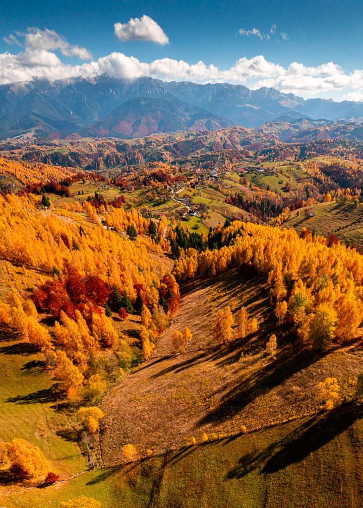 Peștera, Fundata, Șirnea, Moieciu de Sus și Măgura sunt doar o parte dintre satele aflate pe culoarul Rucăr-Bran, între Munții Bucegi și Munții Piatra-Craiului. Pădurile de la poalele munților și de pe dealurile care străbat satele fac ca peisajul de toamnă din această zonă să fie unul cu adevărat magic. Acesta este și motivul pentru care revin an de an, de 6 ani deja, să fotografiez toamna aici. Iată imaginile surprinse în acest an, dar și o filmare aeriană, parte din seria #SateleMuntilor a proiectului Zbor peste Munții României.