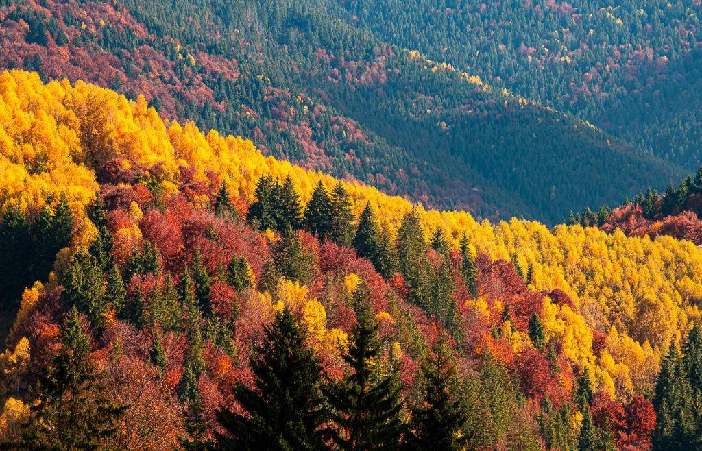 Fotografii cu peisajele de toamnă de pe Culoarul Rucăr-Bran surprinse la final de octombrie