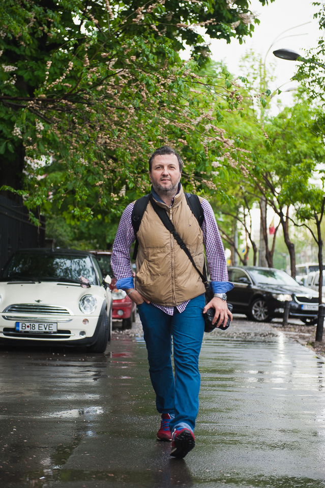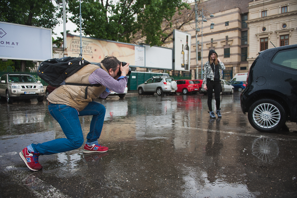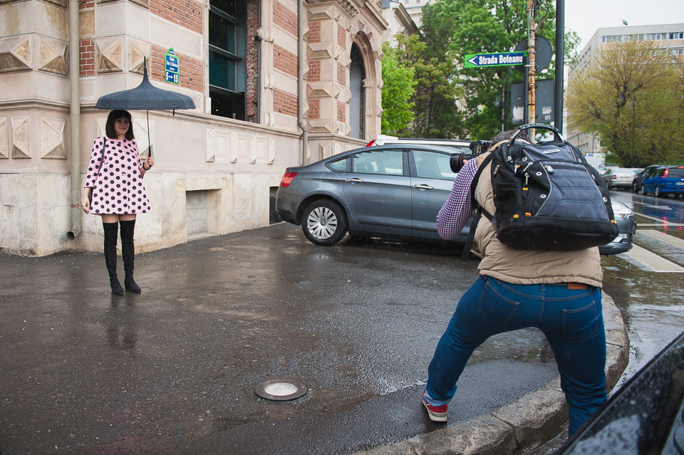 Am așteptat, ploaia s-a liniștit, am pornit din nou și ce credeți? Ploaia a revenit. Și-a ieșit și-o rimă. Dar nu-i nimic, ne-am zis. Continuăm să fotografiem. Noi n-am avut probleme cu ploaia, însă ploaia a descurajat doamnele și domnișoarele bine îmbrăcate să iasă la o plimbare în mijlocul zilei. Așa cum ați văzut pe blogul lui, Cătălin face fotografii de street style. Ce înseamnă asta? Caută pe străzi femei îmbrăcate cu gust, care au un stil aparte, expresiv, plăcut privirii. Nu caută extravaganța sau luxul. Caută aspectul frumos și cu stil.