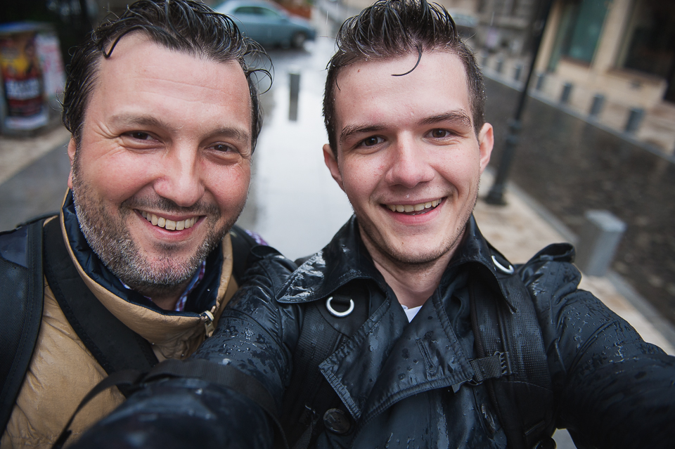 Udați și cu părul rearanjat de ploaie, am intrat să bem un ceai, dar nu înainte de a ne face un selfie. Puțină ploaie n-a făcut rău nici vreunui selfie, nu? Apoi, în jumătatea de oră de pauză, ma mai discutat cu Cătălin, iar el s-a uitat peste fotografiile făcute. 🙂