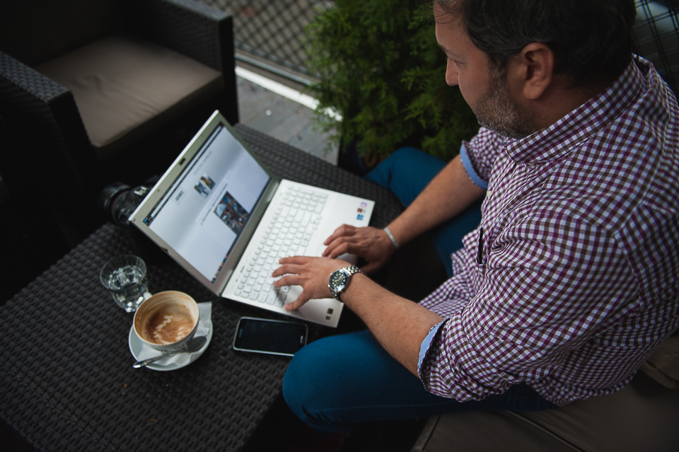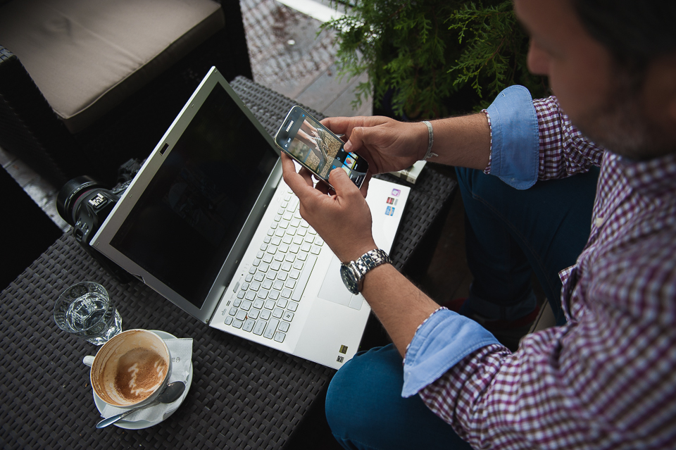 Așa cum ziceam, ziua ne-am început-o cu o discuție la cafea. Pentru mine „doar” o discuție. În tot timpul acesta Cătălin și-a pregătit articolul pe care l-a publicat pe blog, dar și o fotografie pe care a urcat-o pe Instagram. Dacă vă veți uita pe profilul lui de Instagram, lightaholic, veți vedea că imediat după o fotografie cu plan întreg al unei persoane este publicată încă una cu un detaliu al ei – pantofii, acesoriile etc.