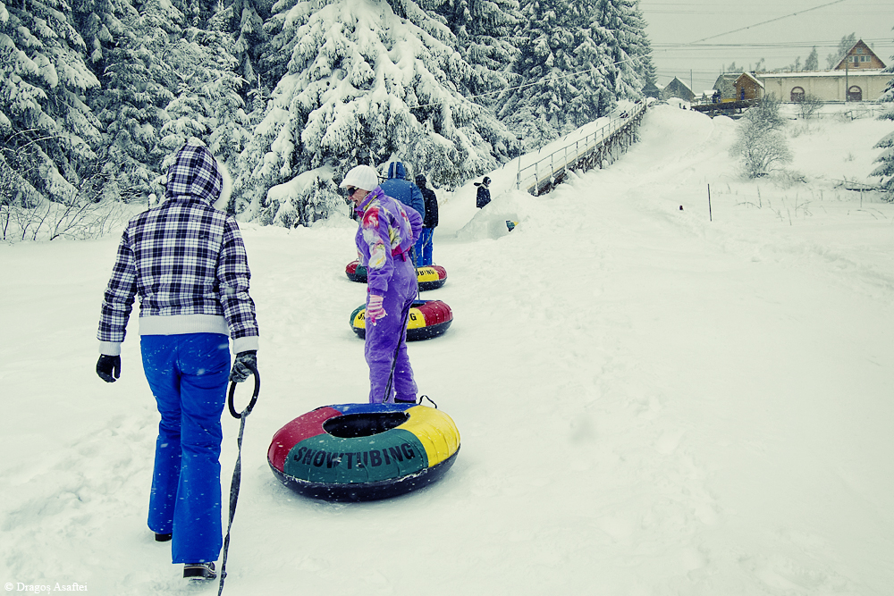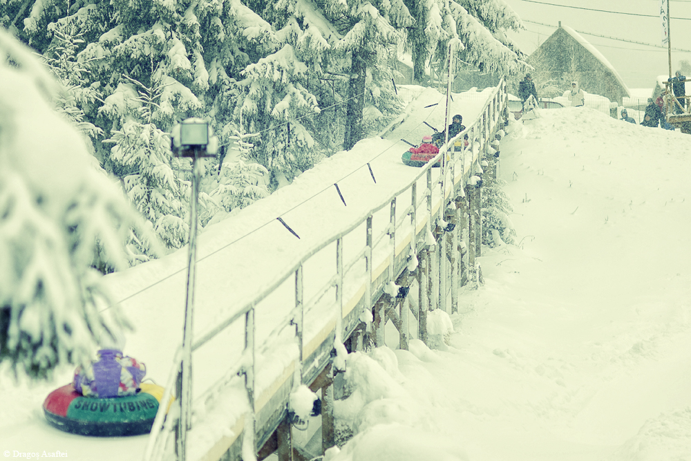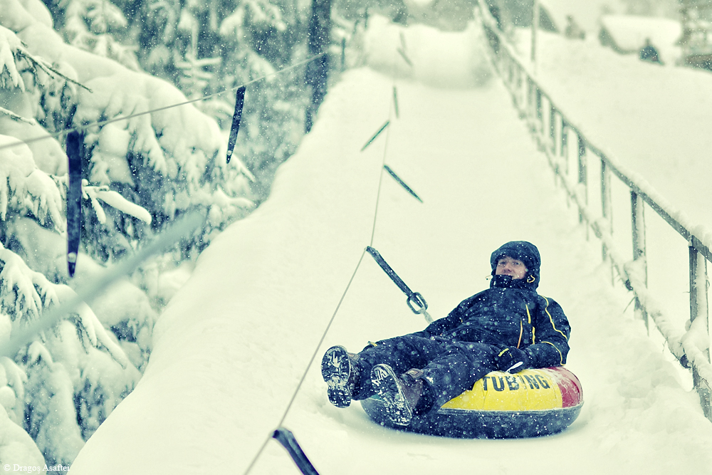 În urmă cu două săptămâni, după o perioadă lungă în care am așteptat ca iarna să vină ca atare, am experimentat ceva nou, snowtubing-ul, sau spus pe românește, datul cu camera de ”tractor” pe o pârtie special amenajată. Bine, adevărul e că e mai mult decât o cameră de ”tractor” și mai mult decât o simplă pârtie.