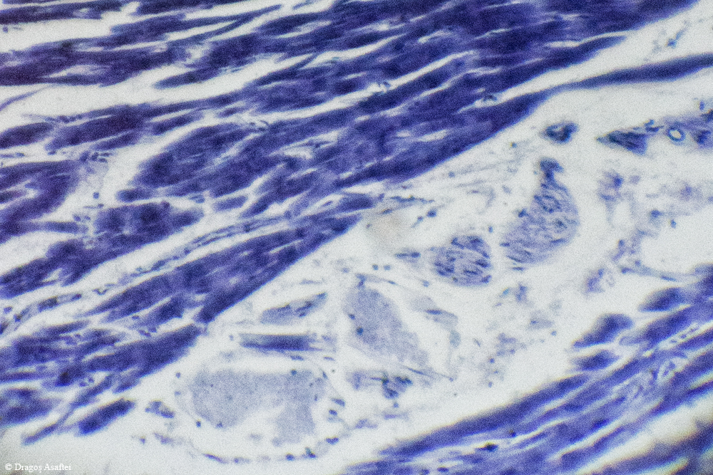 Nu știam de această metodă sau de o altă metodă viabilă pentru fotografierea prin microscop, a fost un lucru de moment care a prins foarte bine. Aveți mai jos fotografii cu următoarele țesuturi (în ordine): vena, os, cerebral, adipos, splina, mușchiul inimii, mușchi striat, mușchi, inimă.