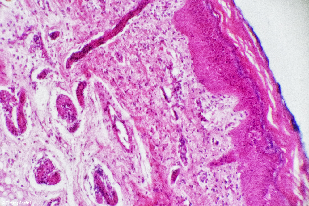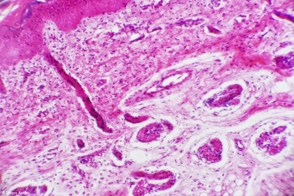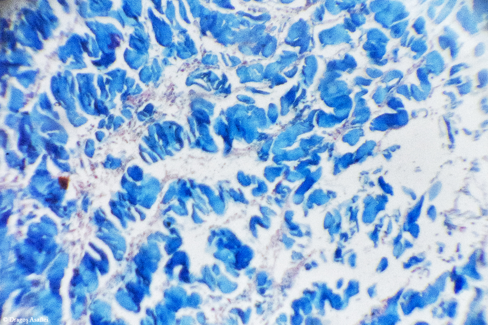 Ieri am încercat ceva mai diferit decât tot ceea ce încercasem până acum din punct de vedere fotografic, am fotografiat printr-un microscop simplu, clasic, câteva țesuturi umane. N-am folosit un adaptor dedicat, nu am folosit vreun anumit sistem care să faciliteze fotografierea prin microscop.