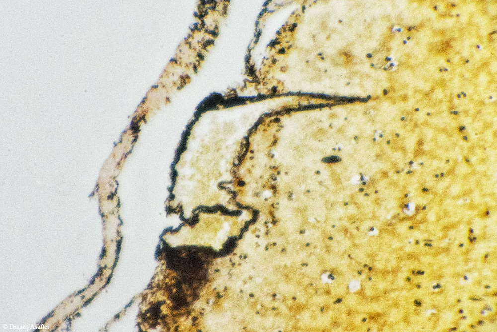Am încercat mai multe metode și am descoperit că cea mai bună a fost prin inversarea obiectivului și scoaterea ocularului de pe microscop. Am reușit astfel să fotografiez cu 18-55 inversat pe D7000, la 20-30mm, cu diafragma deschisă la maxim. Din păcate lumina e destul de slabă și am fost nevoit să fotografiez cu ISO 2500 sau 3200.