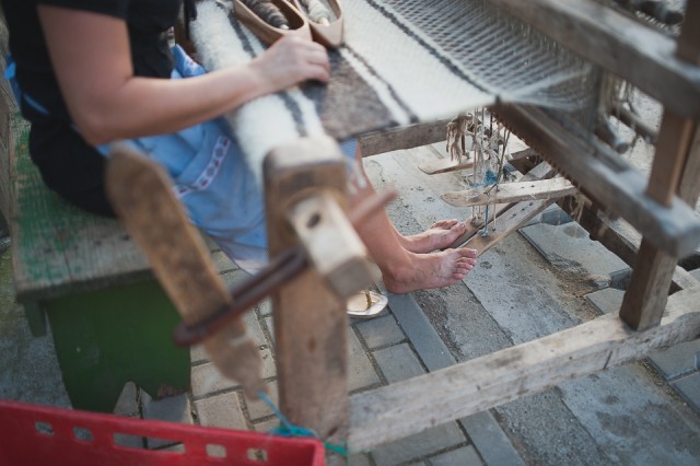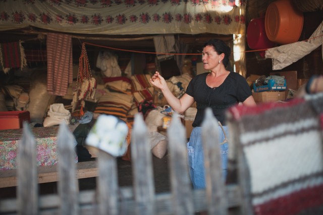 Apoi, mai spre seară, am vizitat-o pe Irina a lu’ Piți. De fapt numele ei este Teodosia Pop, „dar fiecare din sat are o poreclă și asta-i a mea. Dar nu-s a lui Pițurcă.”, completează râzând. Doamna Teodosia țese la război de mai bine de 25 de ani. „De la cât am muncit la război aș putea să ies deja la pensie.”