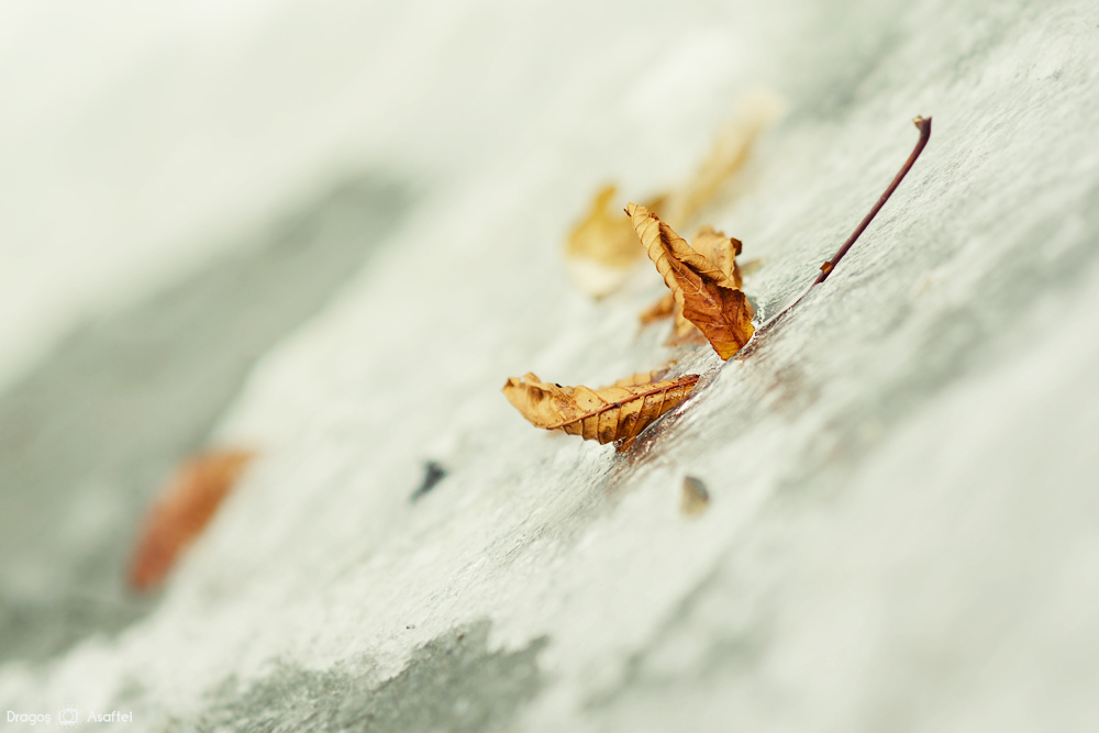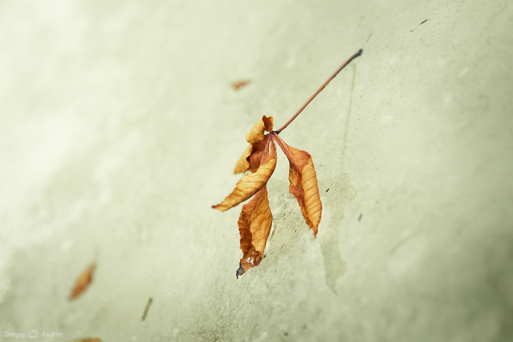 Frunze de toamnă înghețate în așa fel încât dacă le privești nici nu ai spune că suntem în luna martie. Seamănă foarte mult cu o captivare în timp și o înghețare la propriu a fiecărei clipe. Așadar… nu ne rămâne decât să sperăm că totuși va ieși soarele după iarna grea, nu?