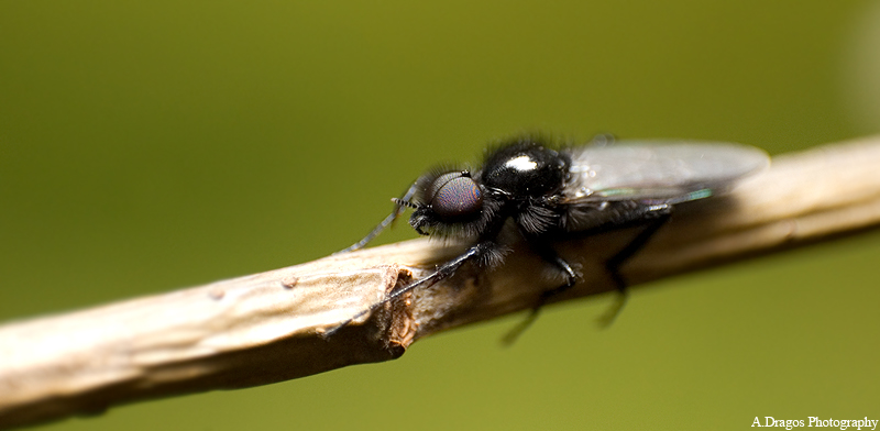 Aceste muşte răpitoare prezintă 2 ochi normal orientaţi şi încă unul între aceştia, având astfel o vedere foarte bună, distingând foarte multe culori.