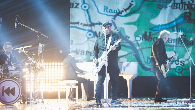 Primul moment după ce a început transmisia live a fost melodia de grup cântată pe scenă de toți artiștii.