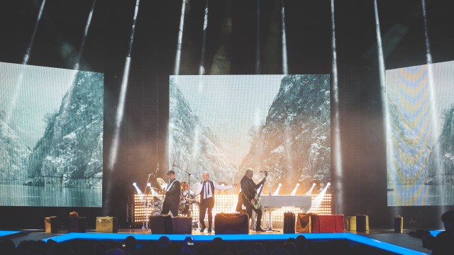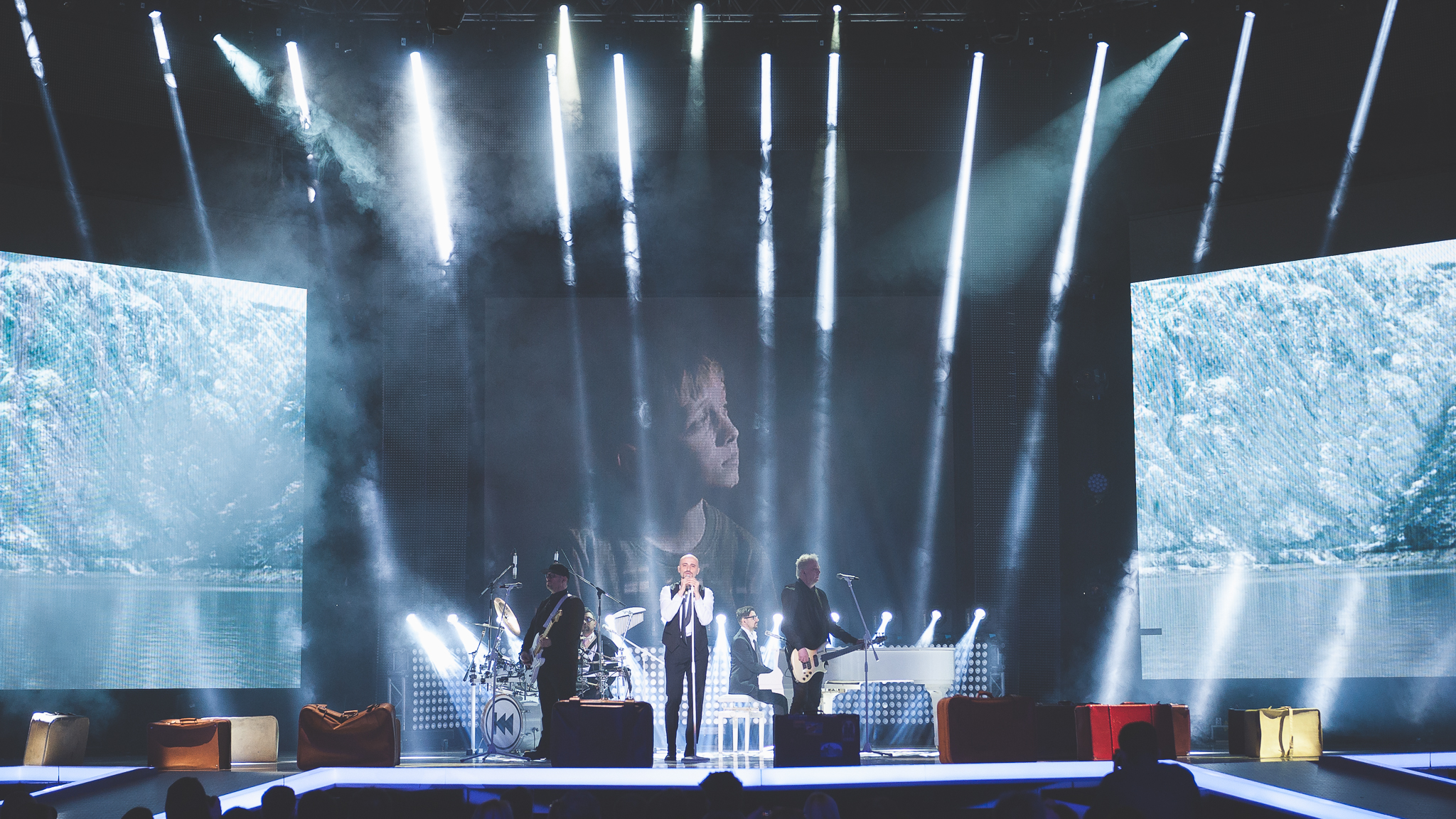 Nu mai târziu de 20:20 plecasem în sală să m-așez la locul pe care-l ochisem în timpul repetițiilor. Dat fiind aranjamentul scenei, era unul din puținele locuri în care se vedeau bine în imagini toți membrii formației împreună cu ecranele din fundal care rulau secvențe din scurt metrajul „Calea Dunării” realizat de Sabin Dorohoi.