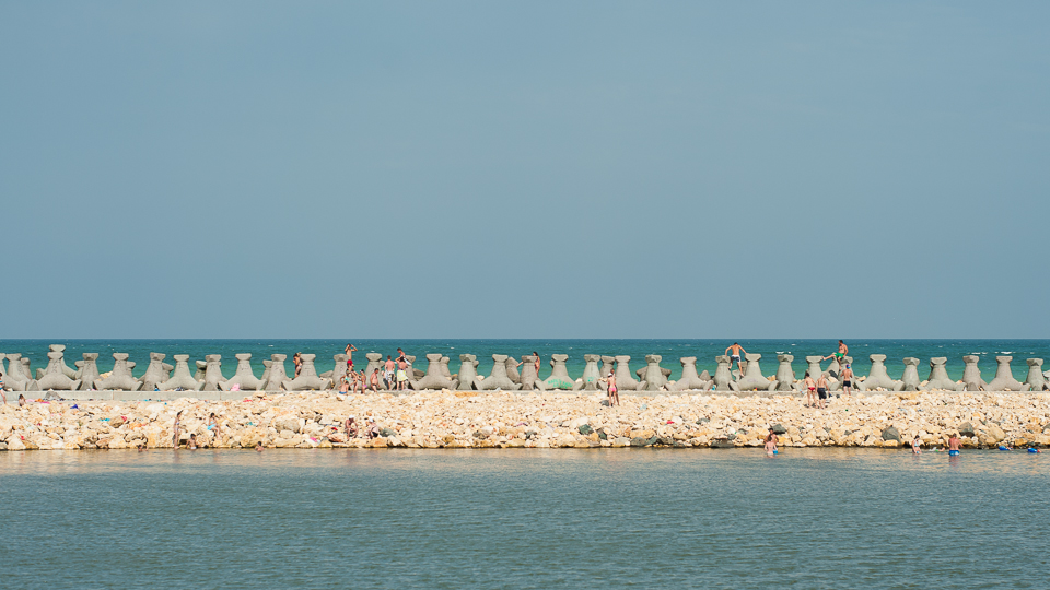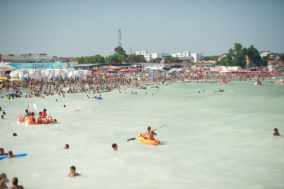 Fotografiile de la concursul de limbo le-am făcut duminică. Tot duminică am prins, cred, una dintre cele mai aglomerate zile pe care le-am avut vreodată la mare. Semn c-a fost un weekend călduros și prielnic pentru multe persoane. Așa arăta Costineștiul duminică la prânz.