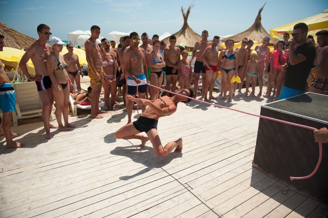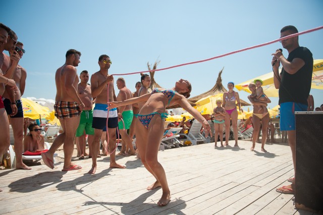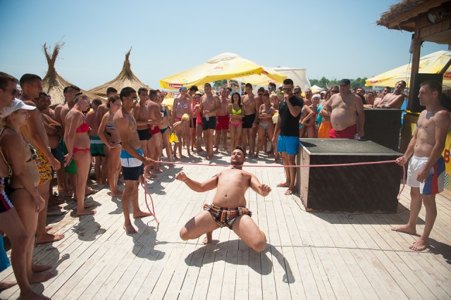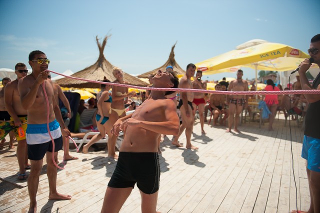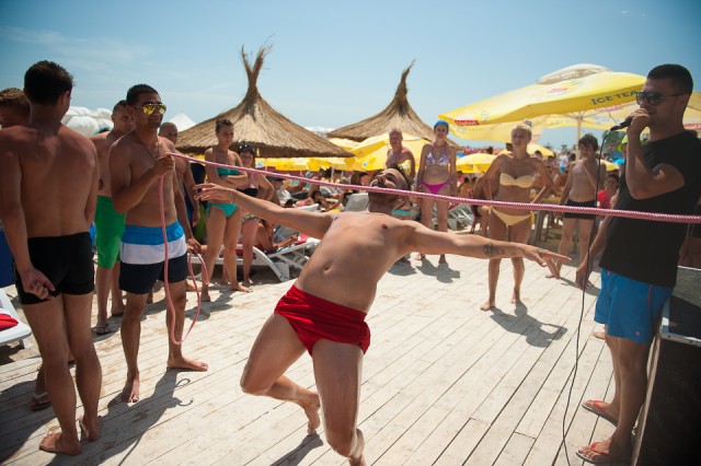 Dar ziceam mai sus de concursuri care se desfășoară pe plajă. Pe durata weekend-ului sunt zilnic trei concursuri la care puteți participa. Este un concurs de selfie-uri cu premii garantate, apoi unul de frisbee și apoi unul de limbo. Știți, jocul acela în care oamenii trebuie să treacă dansând pe sub o sfoară.