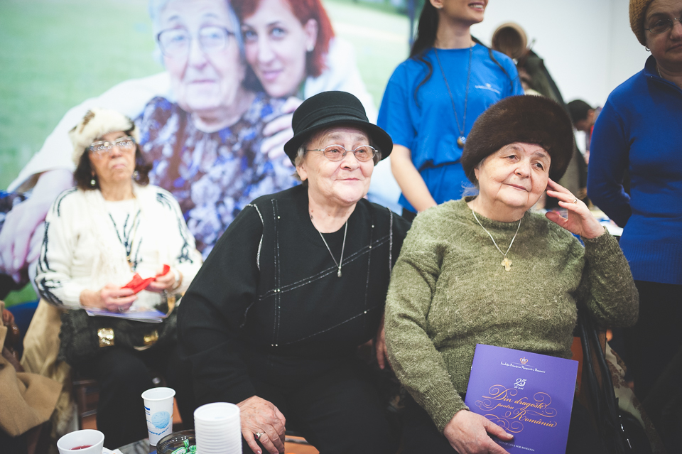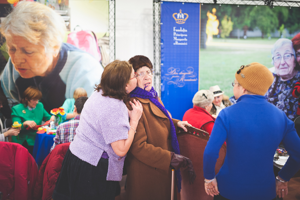 În tot acest timp n-am putut să nu remarc fericirea de pe chipul lor. N-au avut o viață ușoară. Nu au în continuare o viață ușoară. Însă orele astea petrecute în compania voluntarilor și ai altor cunoscuți le oferă energie, zâmbete și o stare de bine. Câteva dintre doamne veniseră chiar cu flori, știind că peste câteva ore urma să ajungă la eveniment și Alteța Sa Regală Principesa Margareta a României. Doamnele făceau parte din proiectul Niciodată singur, despre care vă spuneam mai devreme.