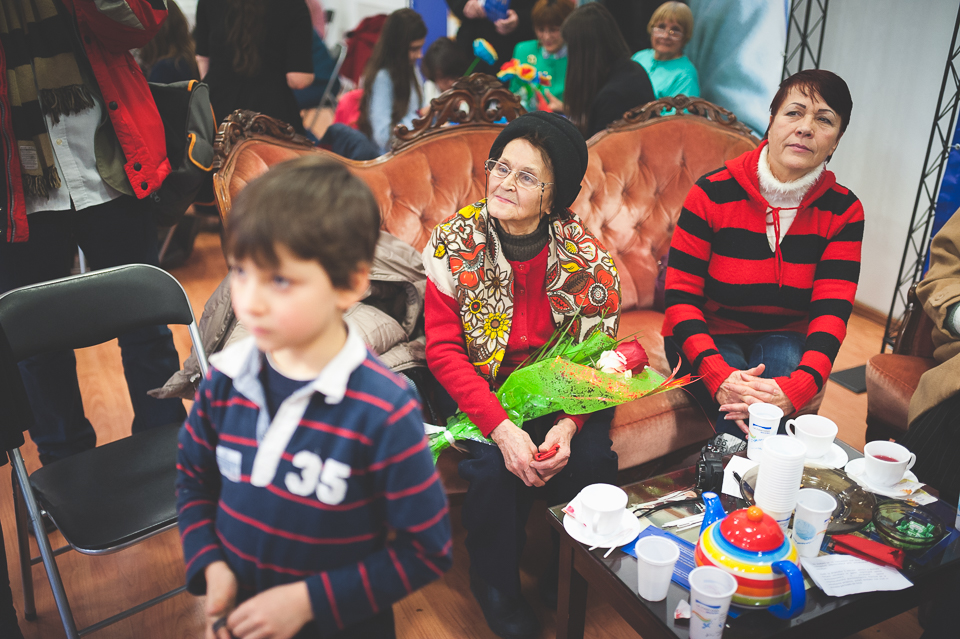 În timp ce îi ascultam pe ei cum repetau m-am întâlnit cu Mario. Are 8 ani și merge la o „școală departe de aici, nu pot să-ți dau mai multe detalii”, așa cum mi-a zis chiar el. A venit cu ai lui să vadă ce se întâmplă la eveniment. Îi place să fie în centrul atenției și să recite poezii, în special pe cele scrise de mama lui. „De la 6 ani știu 44 de strofe din Luceafărul!”. Câteva minute mai târziu s-a îndreptat către doamnele de care vă spuneam mai devreme și a început să le recite o poezie despre bătrânețe. Îmi pare rău că n-am reținut titlul poeziei. Erau oricum unele dintre cele mai puternice vorbe pe care i le puteai spune unui bunic. Toate doamnele parte din programul Niciodată singur l-au privit cu admirație și cu lacrimi în ochi.